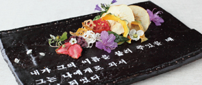 through a menu conveyed through poems, pictures, and stories. Each dish describes a poem, and the beautiful garnish that looks like a painting touches not only our mouths, but also our eyes and heart.